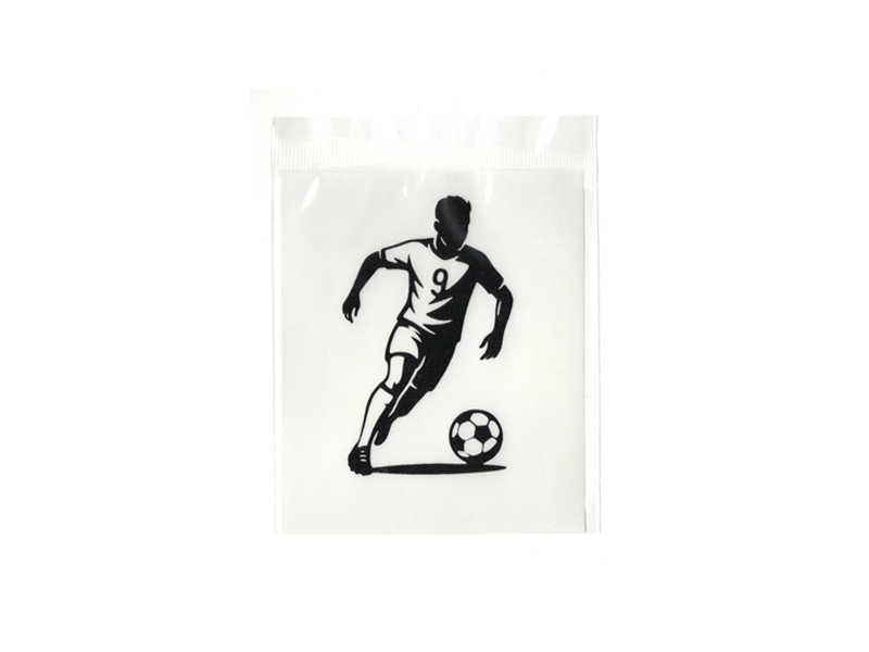 Sportowy wzór przedstawiający piłkarza z numerem 9 w dynamicznym ruchu z piłką. Idealny tatuaż dla młodych fanów piłki nożnej i wszystkich, którzy kochają sportowy styl i adrenalinę meczu.