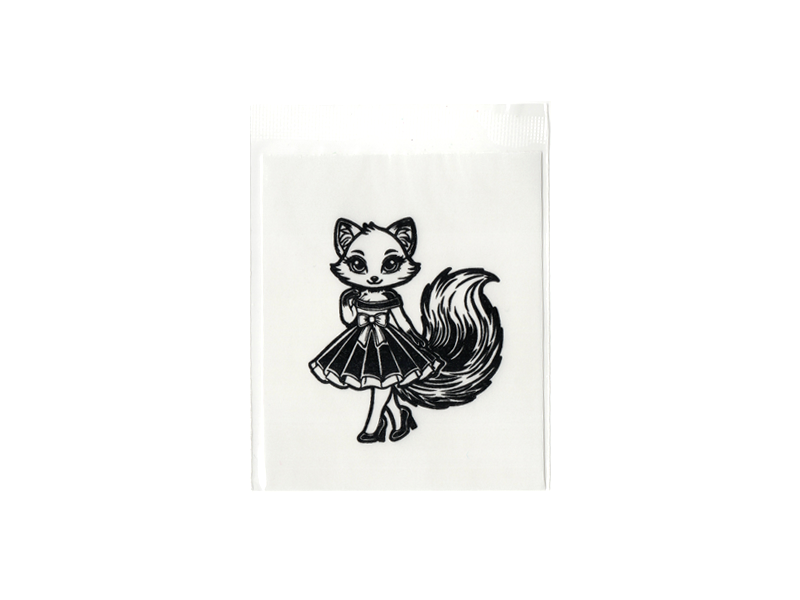 Ten wyjątkowy wzór przedstawia elegancką lisiczkę w sukni z kokardą i na obcasach – pełna wdzięku, pewności siebie i bajkowego uroku. Idealna dla dziewczynek, które kochają modę i zwierzęce postacie z charakterem.