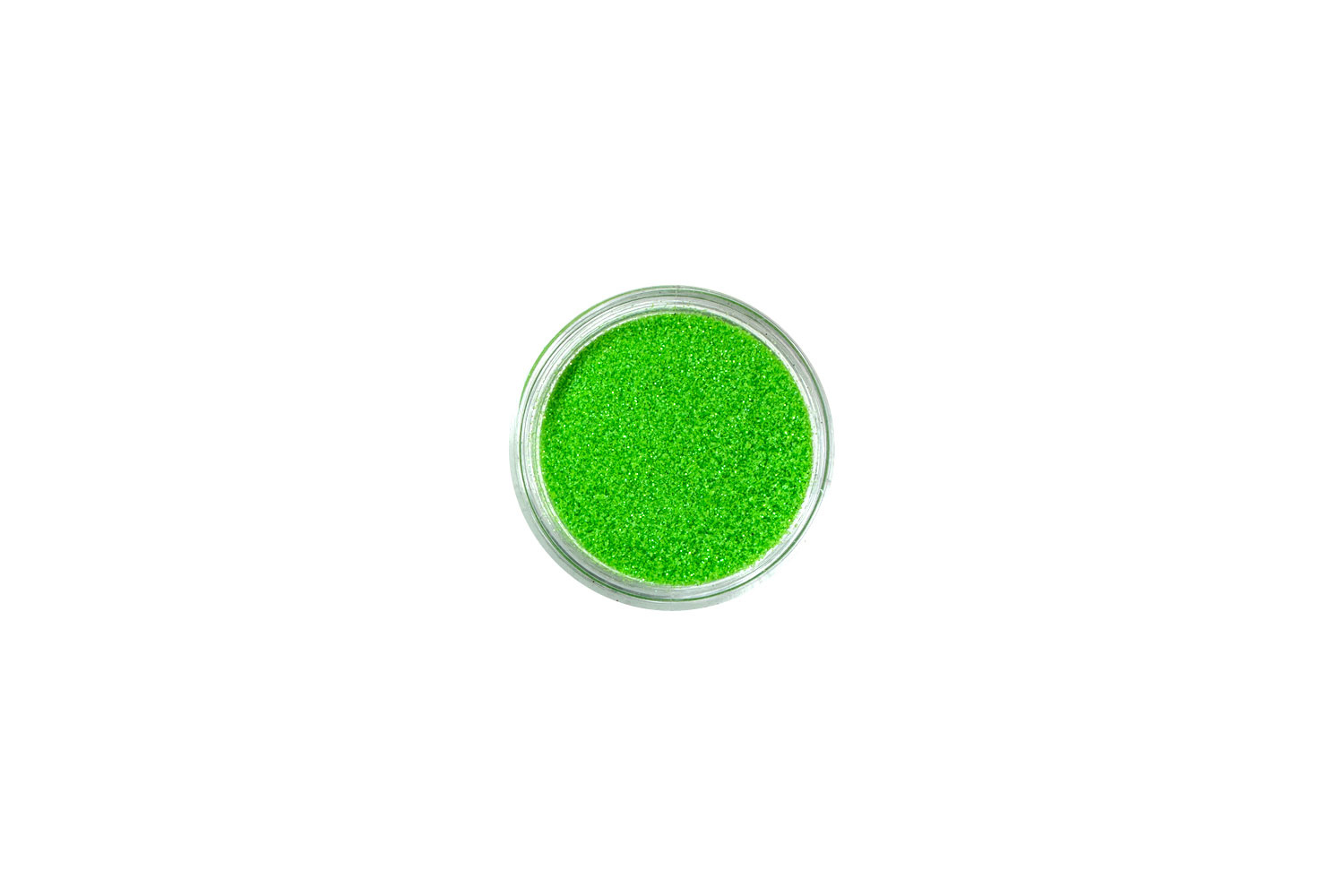 - Brokat kosmetyczny w intensywnym, neonowo-zielonym kolorze z bardzo mocnym połyskiem. Miałka frakcja 0.1 mm zapewnia równomierne krycie i ekstremalnie wyrazisty efekt na skórze.