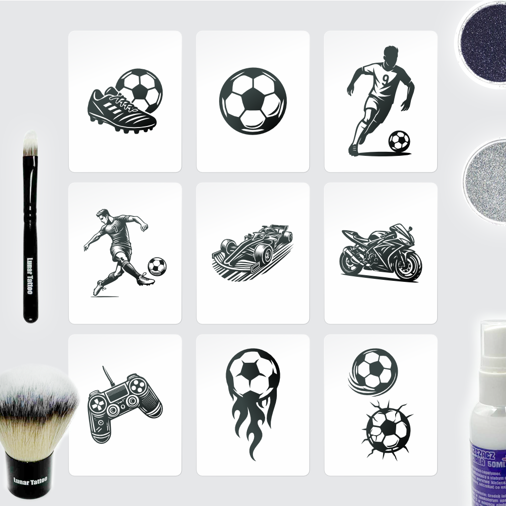 Dynamiczny zestaw dla wszystkich fanów sportu i szybkiej akcji! W środku znajdziesz 9 motywów związanych z piłką nożną, motoryzacją i gamingiem: piłki, sportowców, bolid wyścigowy, motocykl, kontroler do gier oraz efektowne grafiki piłkarskie.